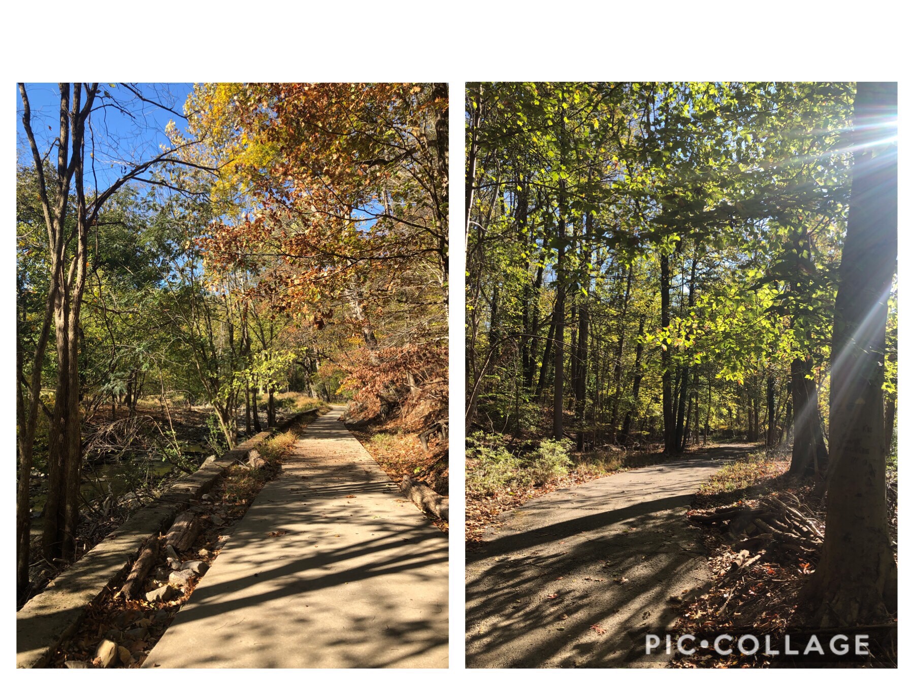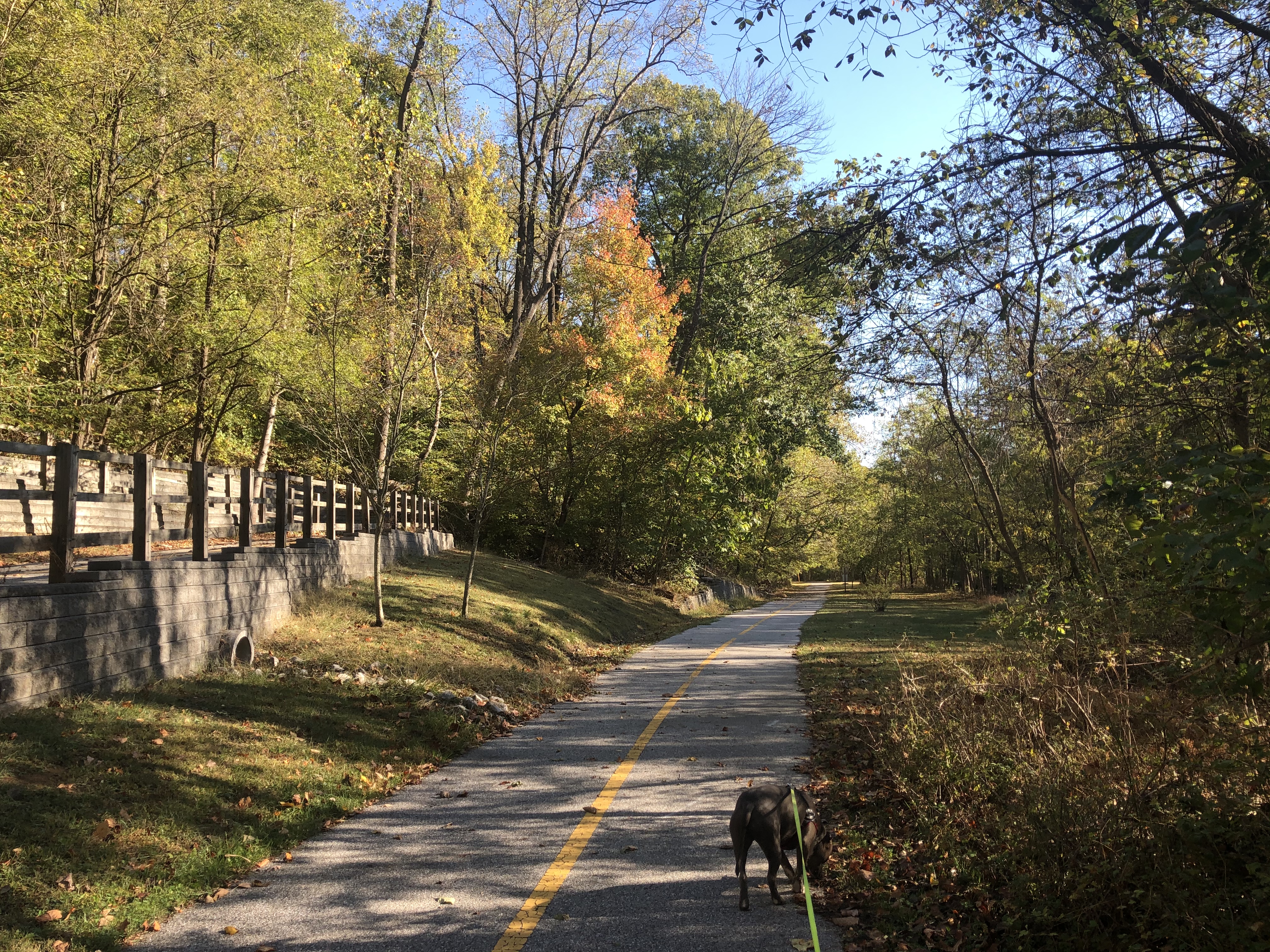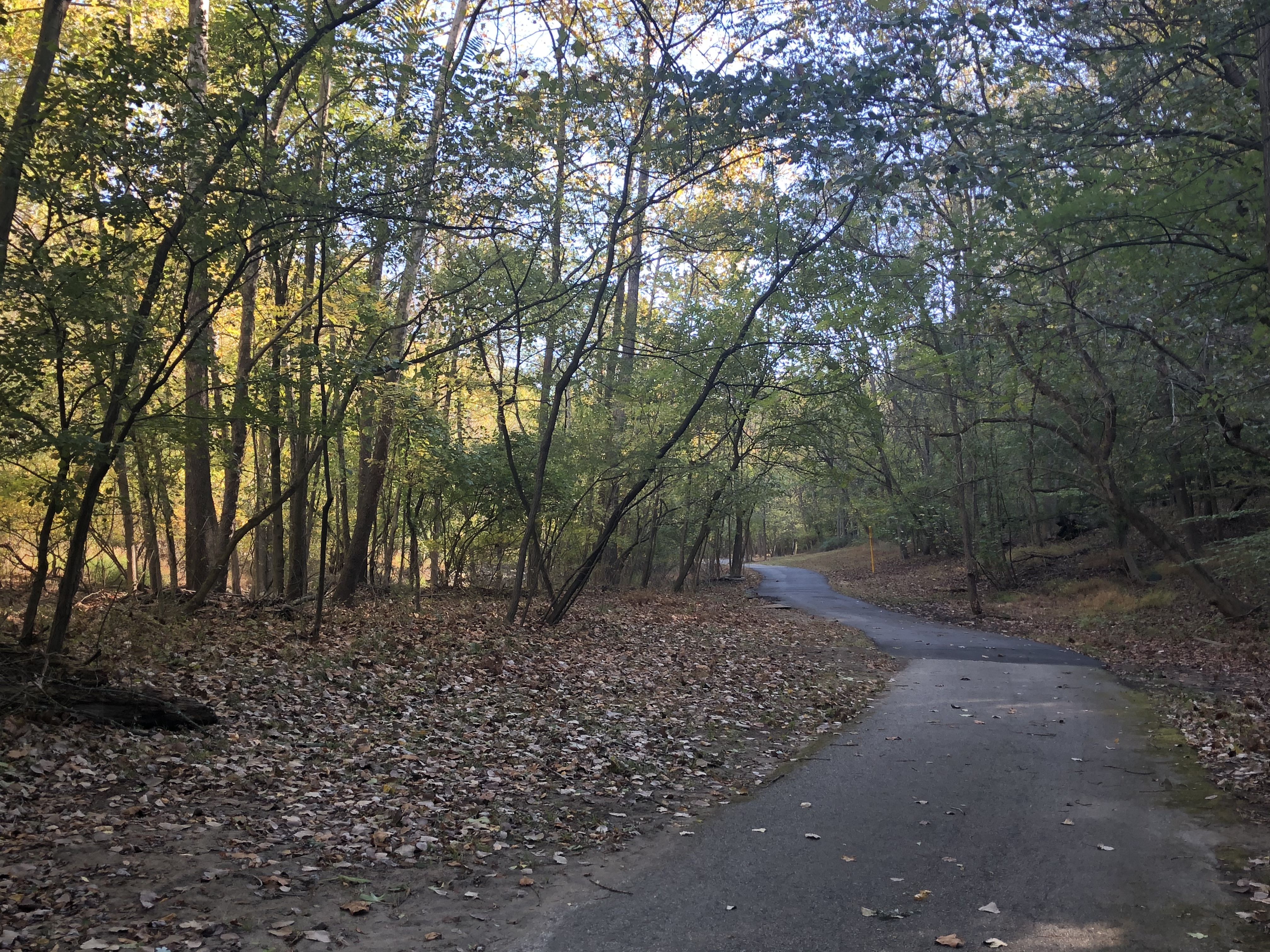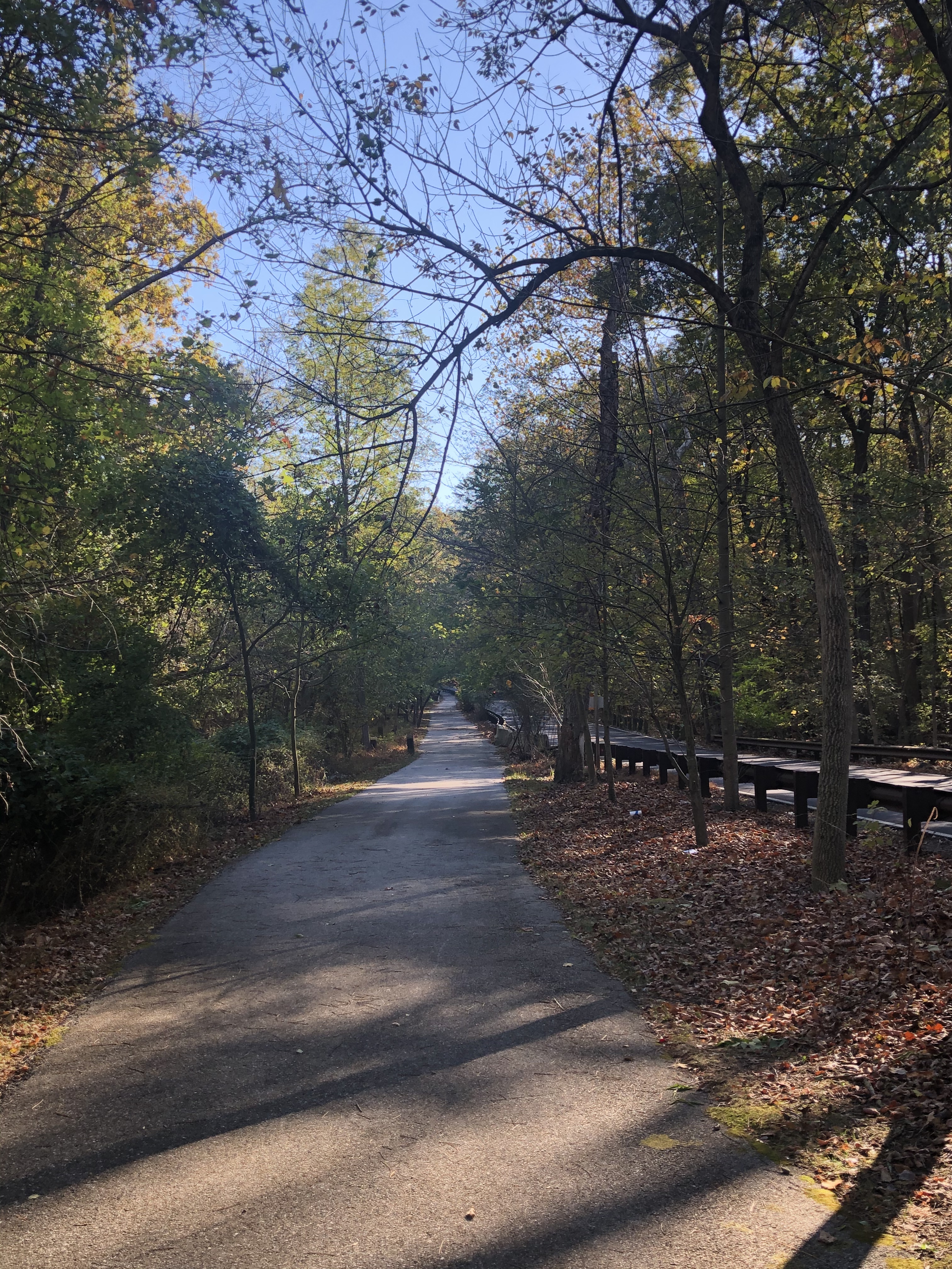 This portion of the bike trail is parallel to the road for less than a mile and gets right next to it after passing the first small metal bridge. There is also a cut through on the left before the bridge if we want peace and quiet.