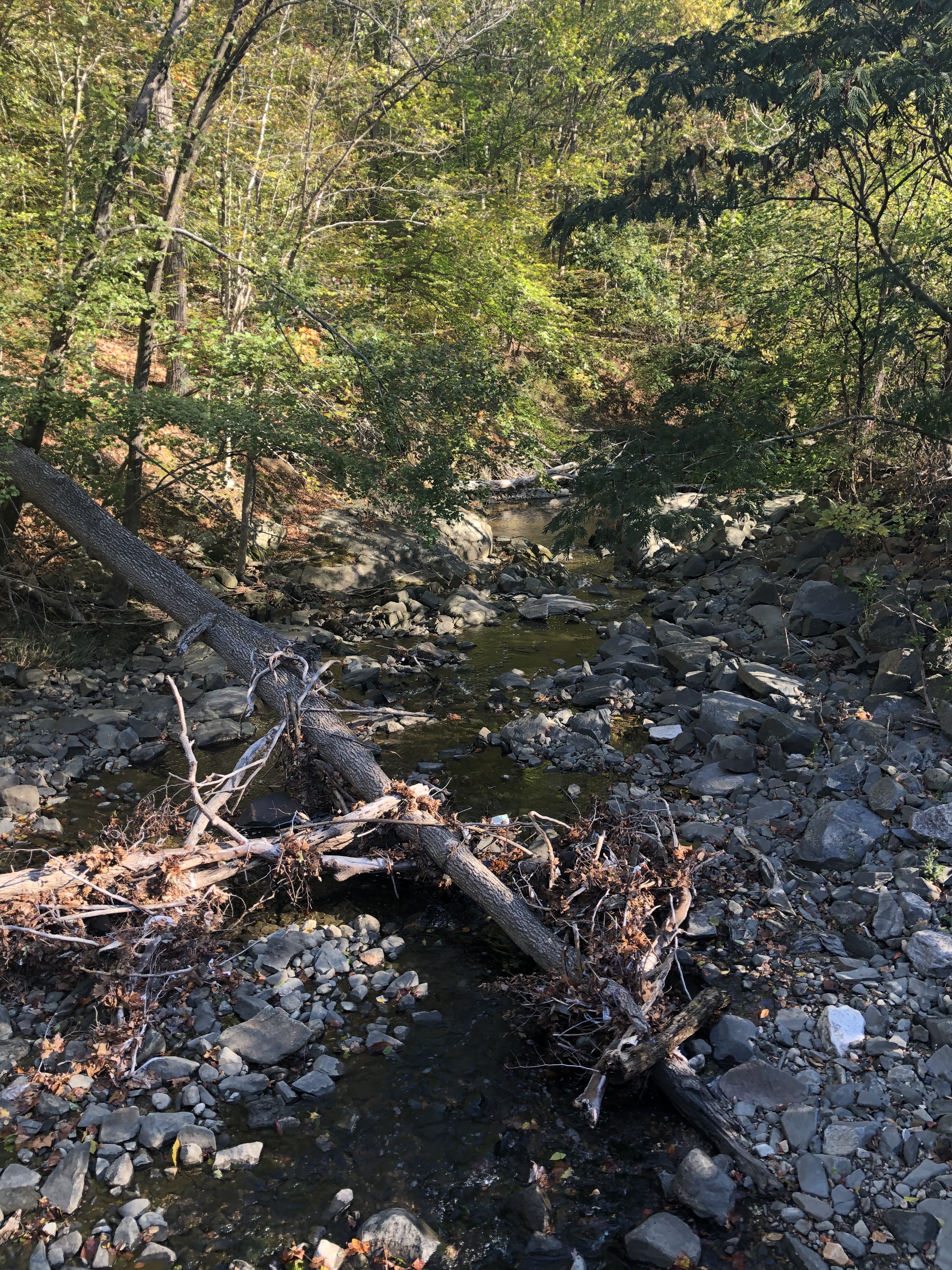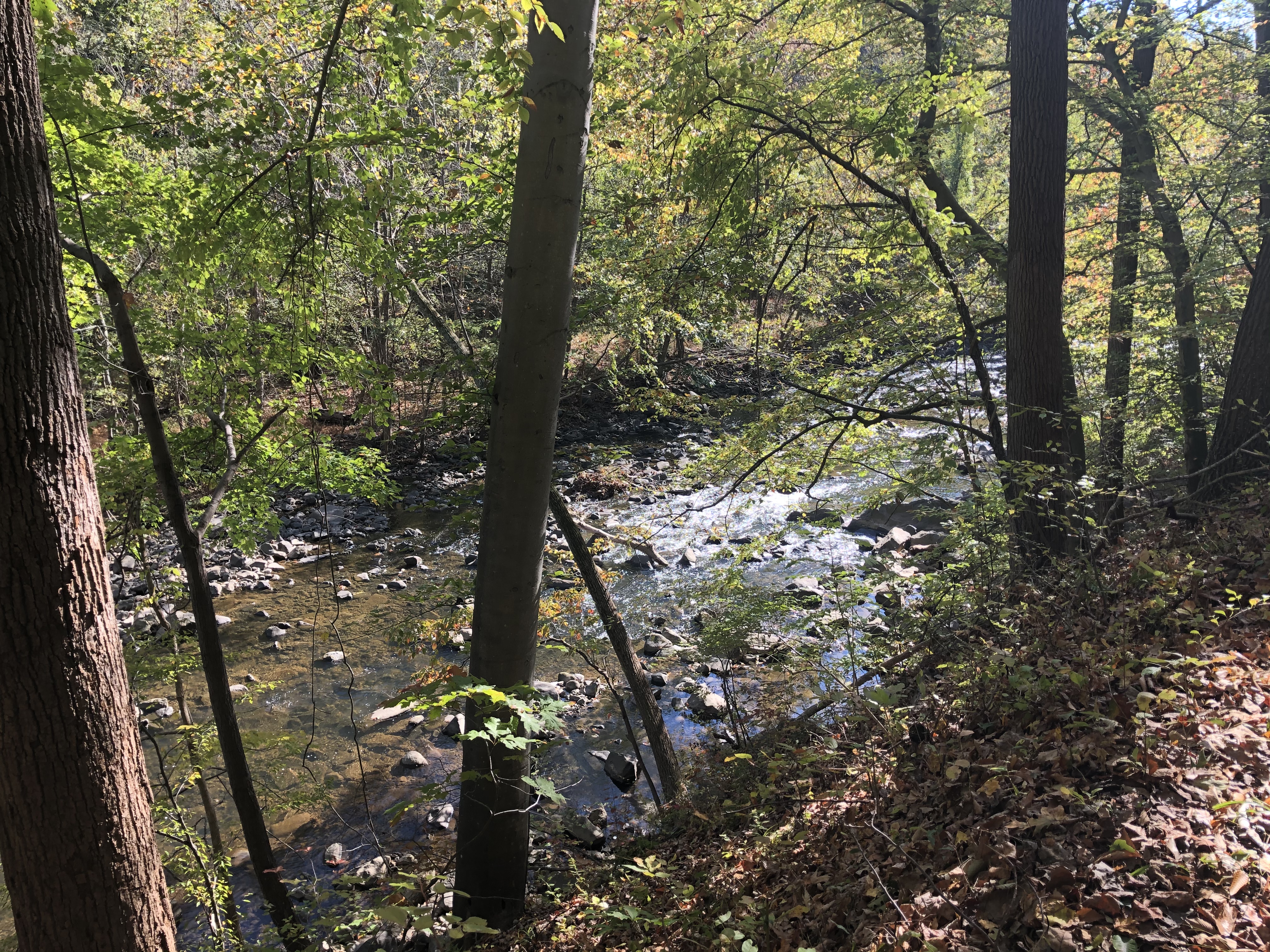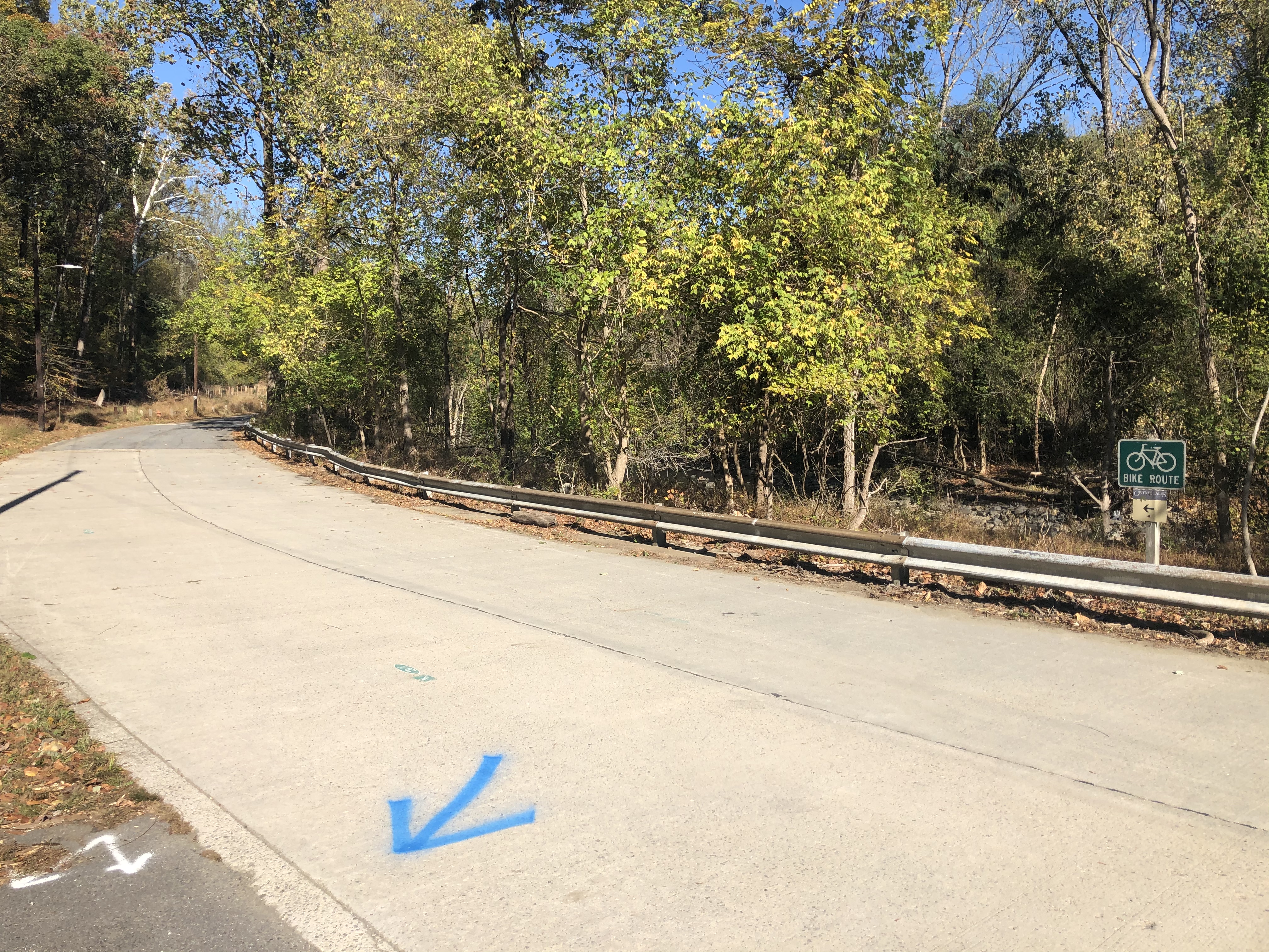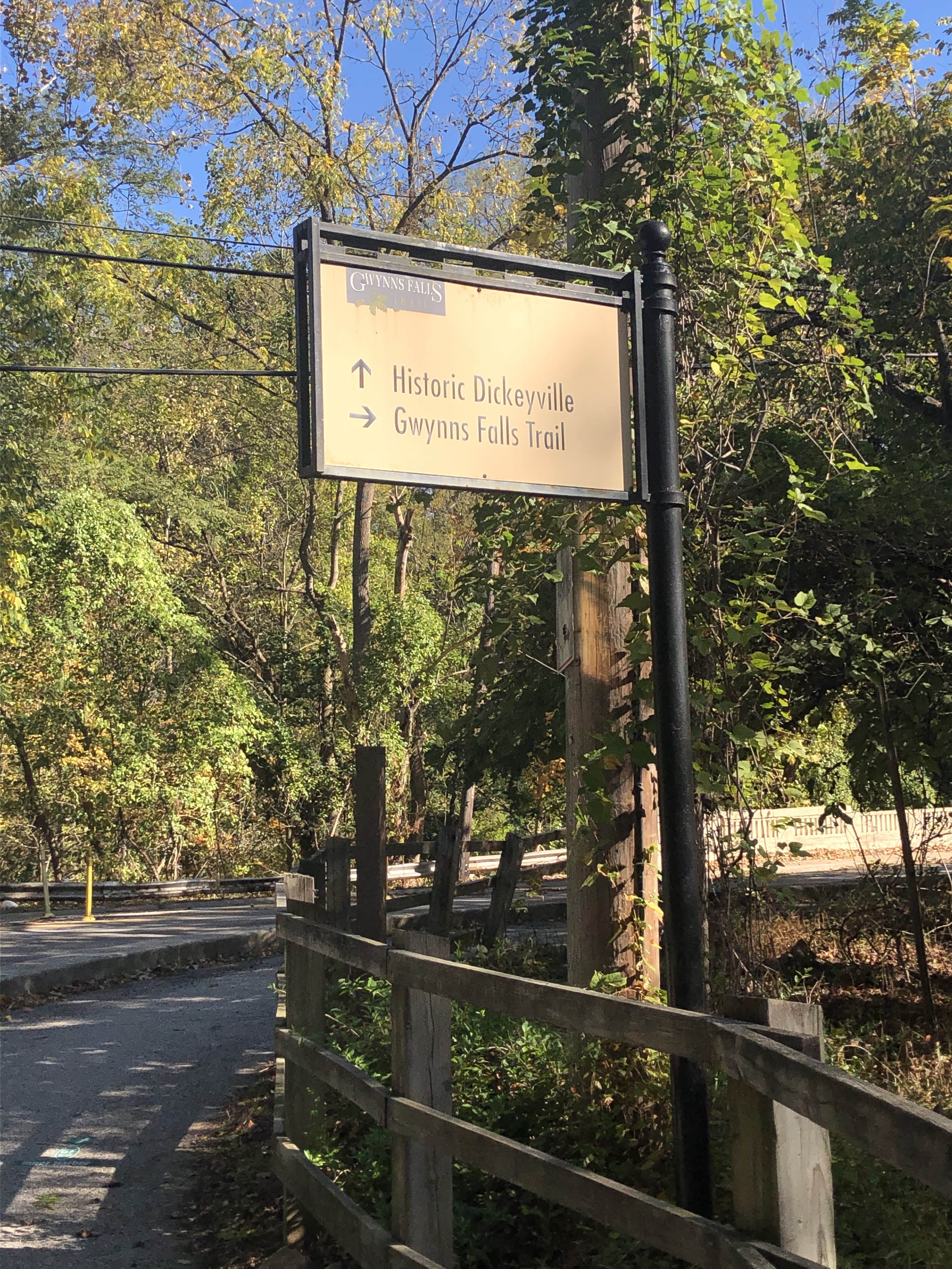 Gwynn’s Falls is shimmering across the road in the morning sun.