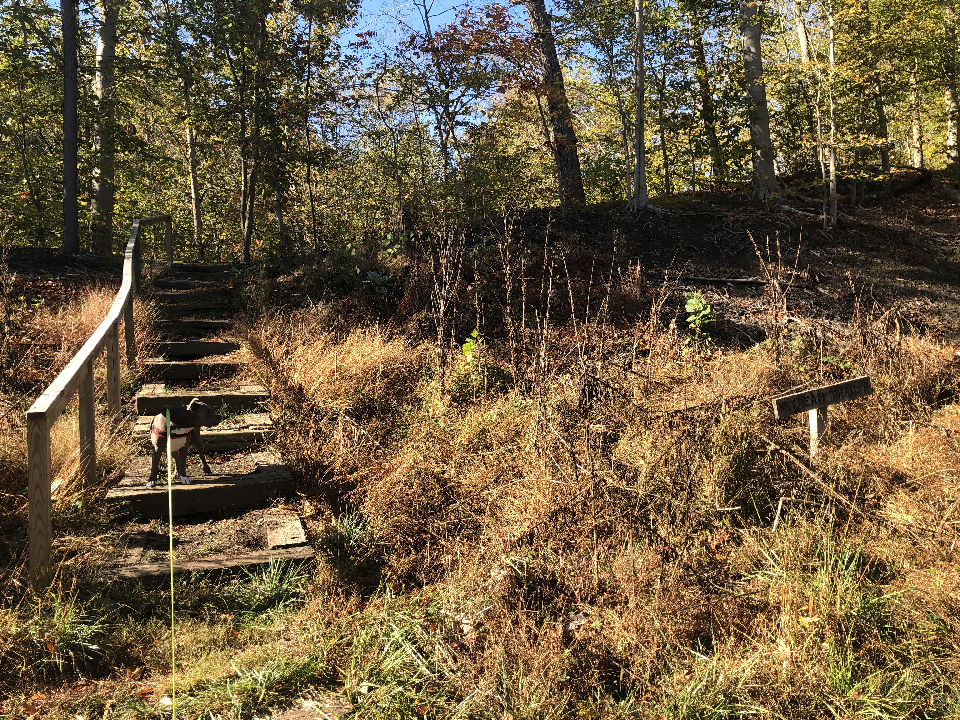 Crossing this one will take us to Wetheredsville rd. aka bike trail. After the bridge there is the wooden passage up to Stream trail through the ridge on the small hill.