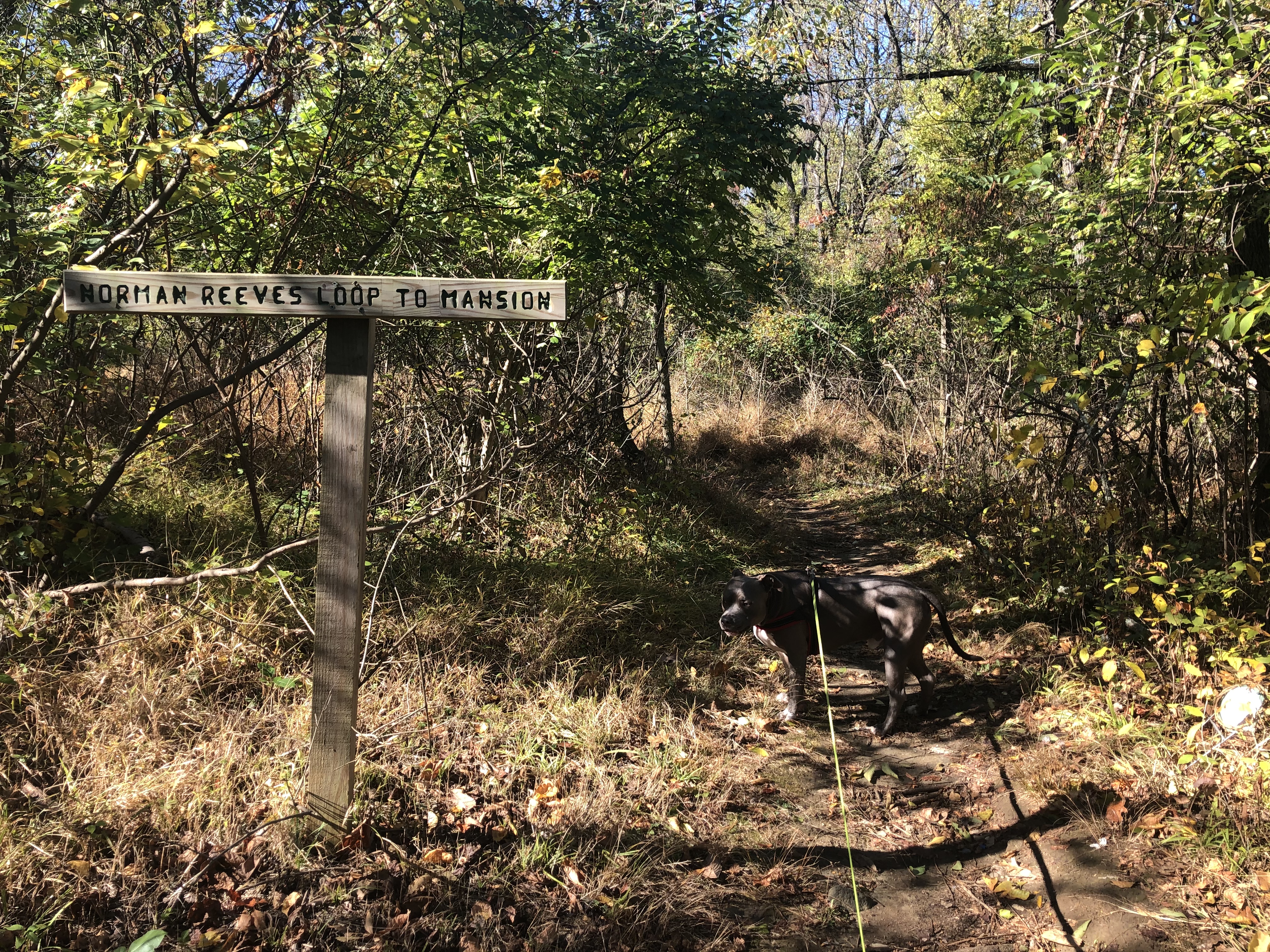 After harnessing Mag and locking the car we head right, following the wooden sign. I have never encountered anyone on this portion of the Leakin trails. Looking forward to solitude for an hour or so.