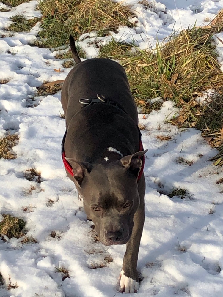 Magzilla, our AMSTAFF has rescued us in 2017 on a rainy day in May. It was a rough start because we didn’t know anything about him after him walking up on our property. But he has showed us what an amazing person he is and things became happily ever after pretty quick. He is very social, both with people and other pets. He loves his cat sisters and brothers and off course walking.