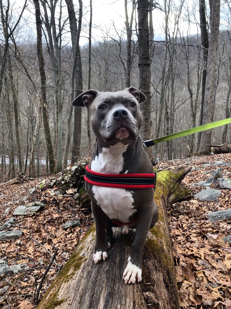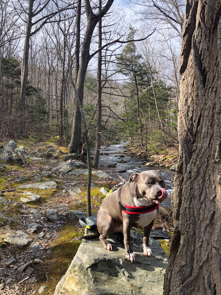 There is a beautiful trail going from the parking area next to Big Hunting Creek but it dead ends within 0.3 miles. I just got Mag to pose with the scenery.