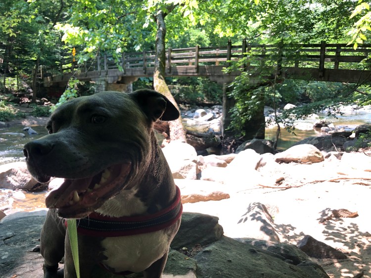 Keeping with our motto, after we leave the parking area I steer Mag towards the trail on our right to hike the longest route. It is a very generous, well maintained trail which ends up being a dead end. It is parallel with Grant Rd. NW. and leads down to Broad Branch (creek?). The last 50 feet is sort of a drop without traction. Be careful if heading down to the water.