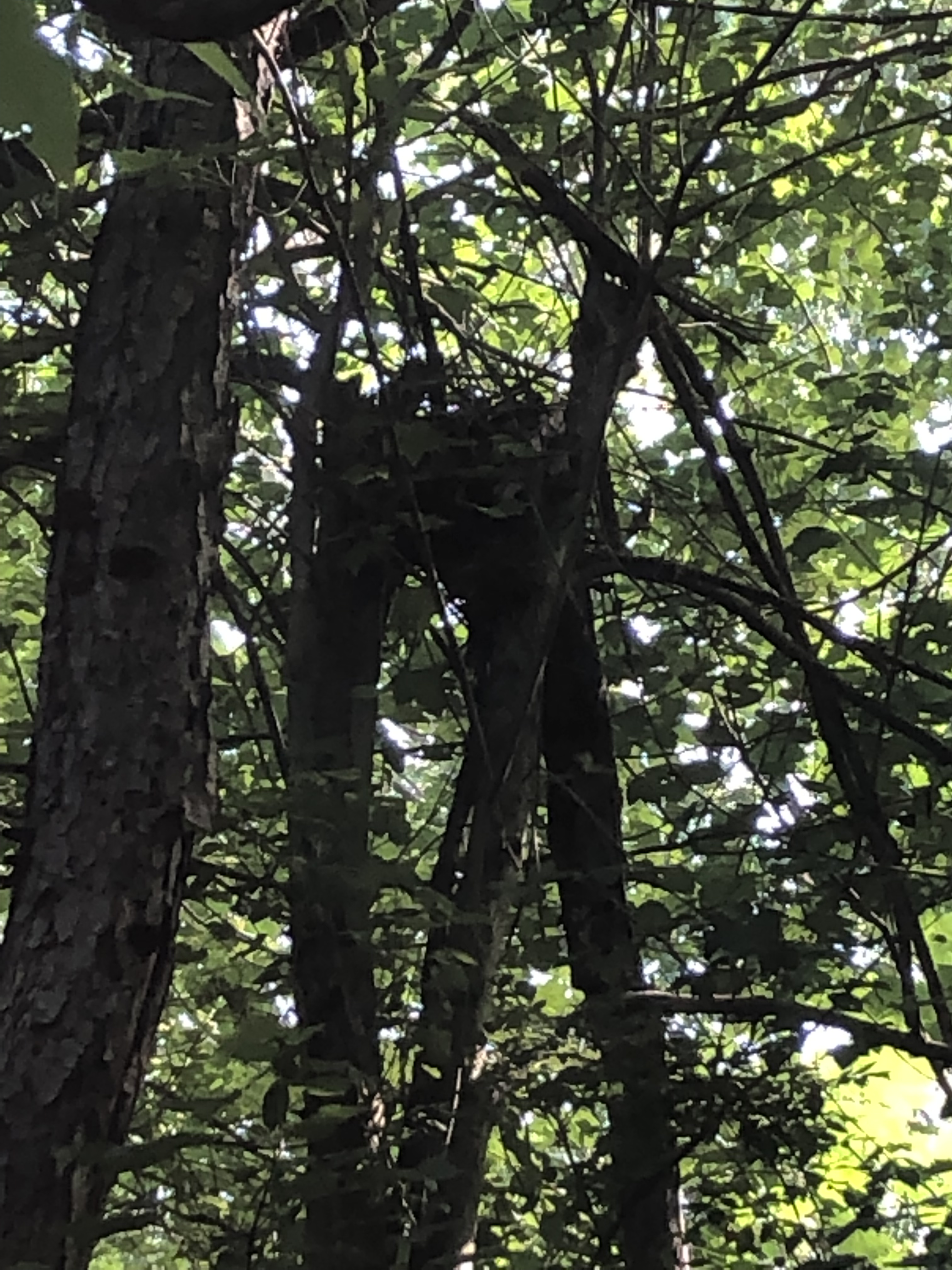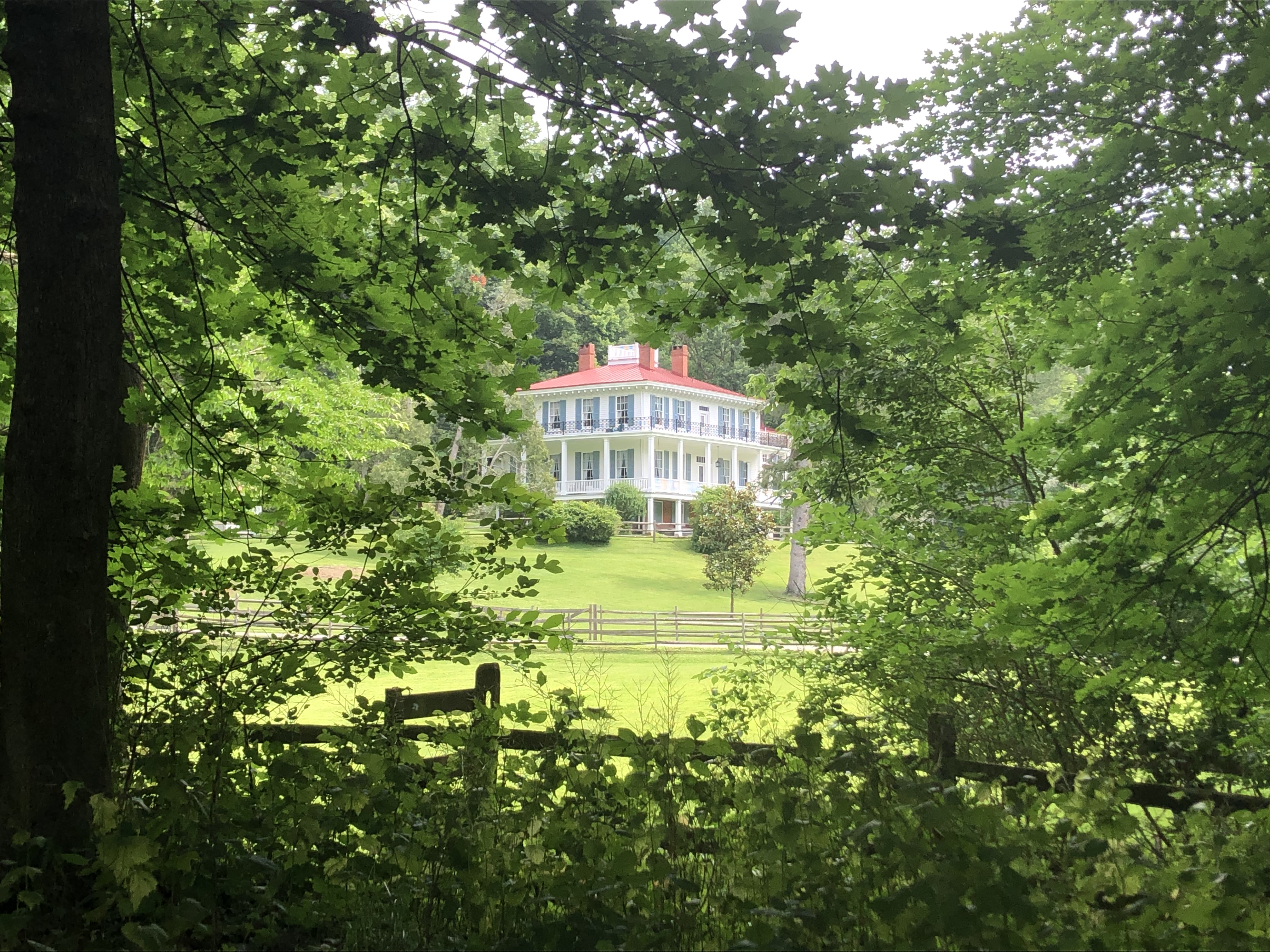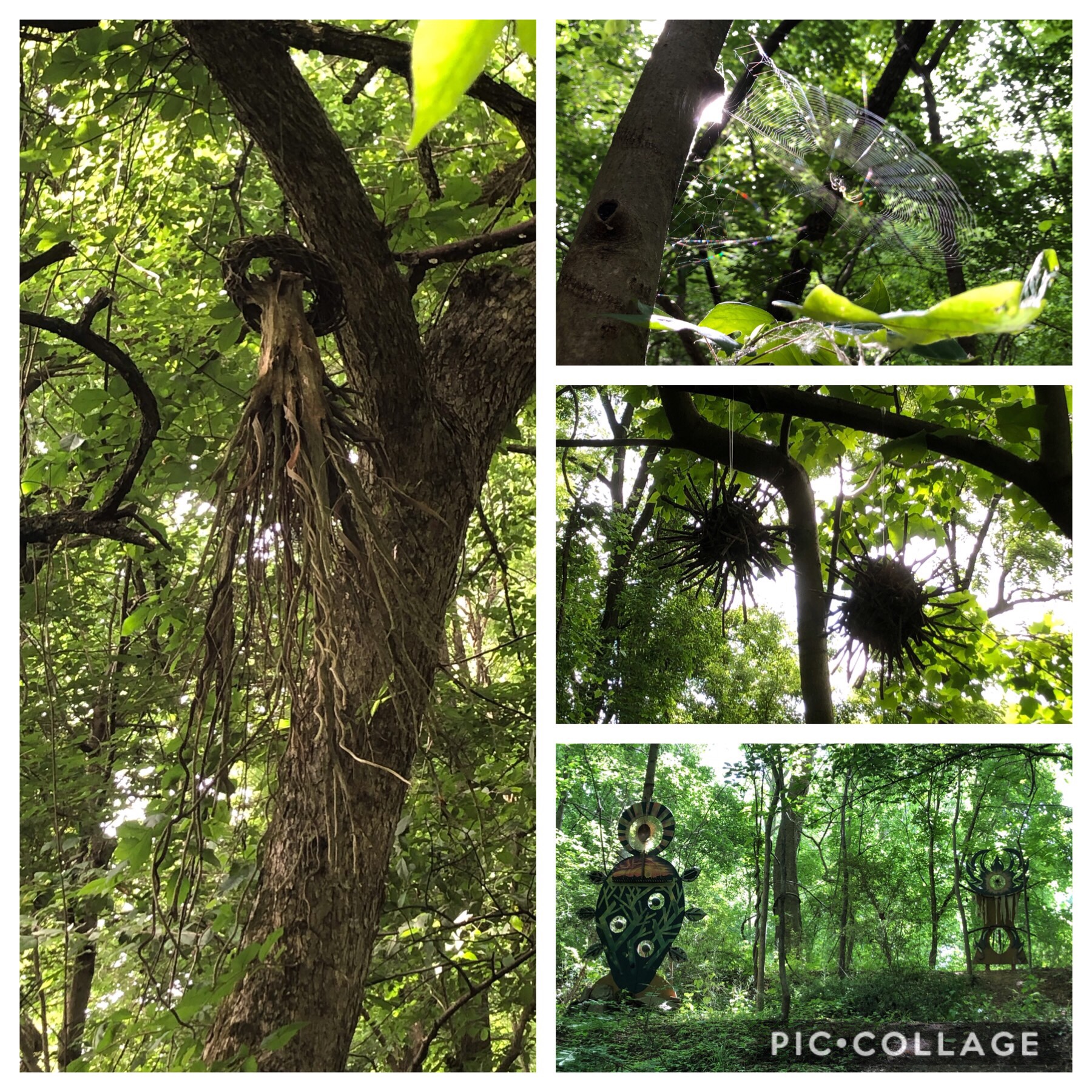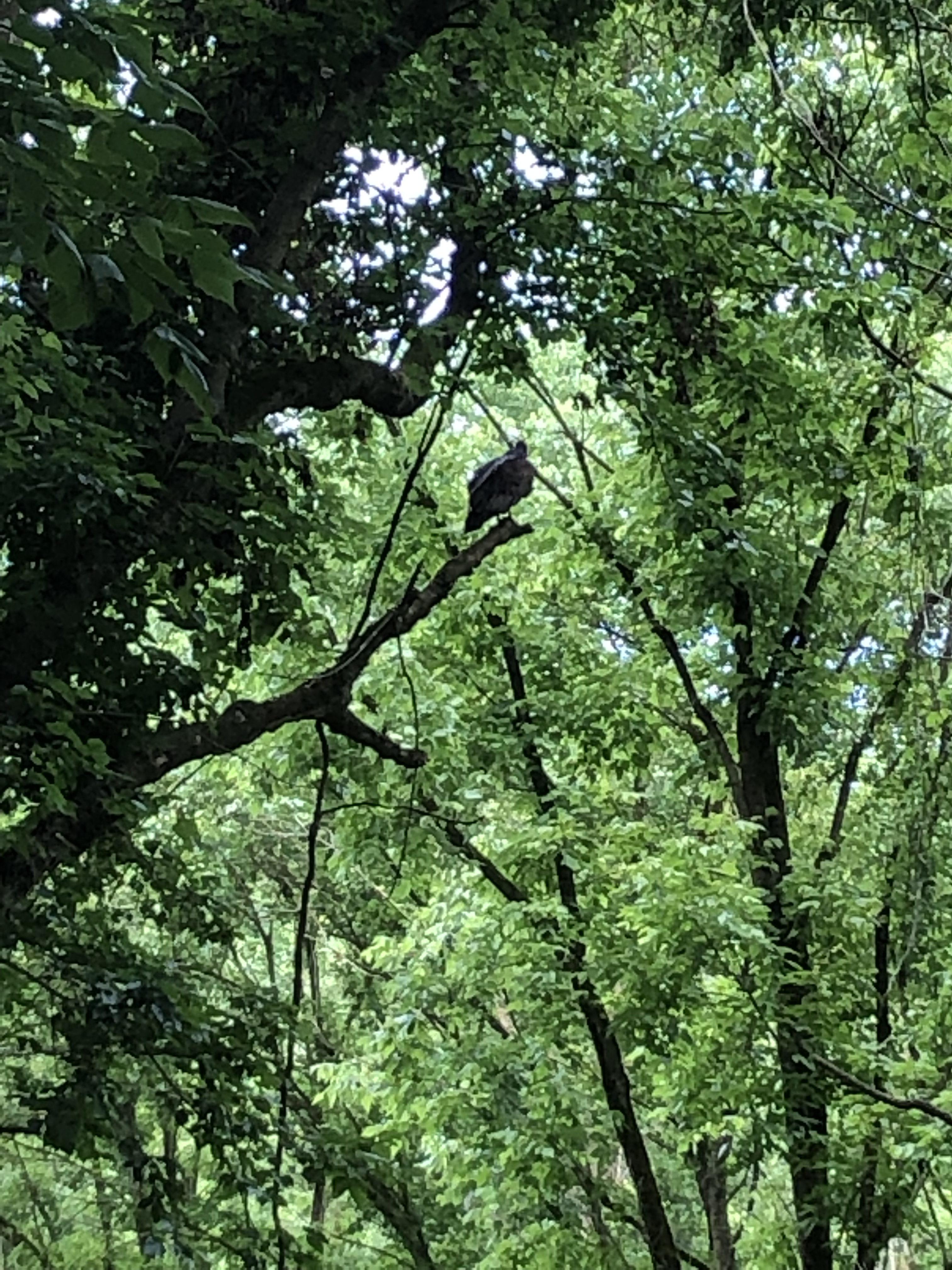 I pulled Yoda in under the trees so while it’s still be hot by the time we get back, it’ll help a little. Starting towards the Nature Center, greeting the chickens, a turkey and a gander after passing the Nature Classroom and a tenant house on the right. Heading into the woods left to the interactive playground we says hello to a beautiful owl in an inclosure.