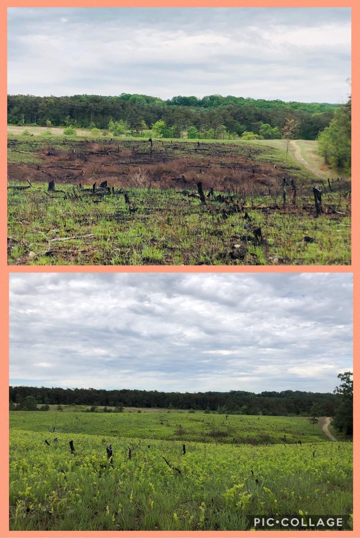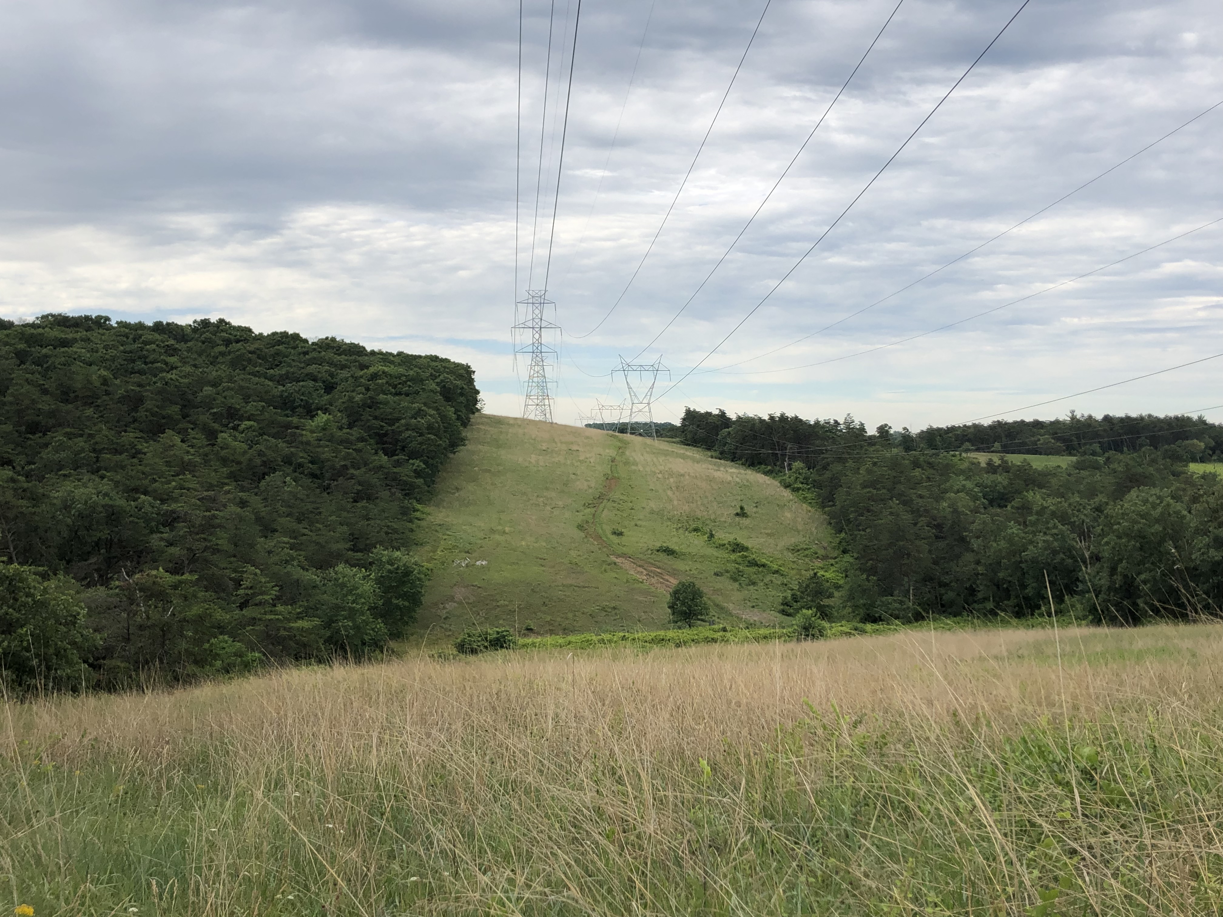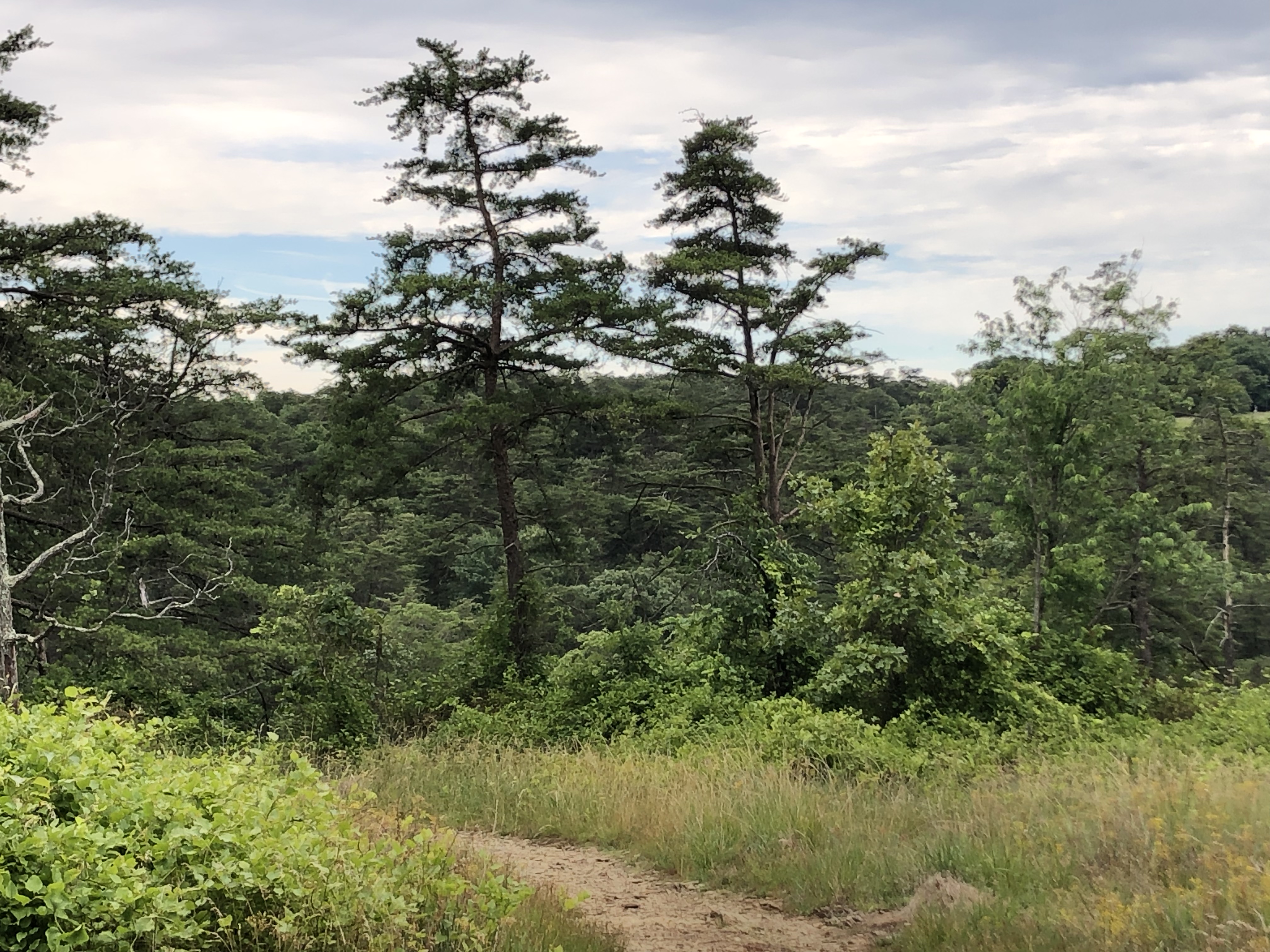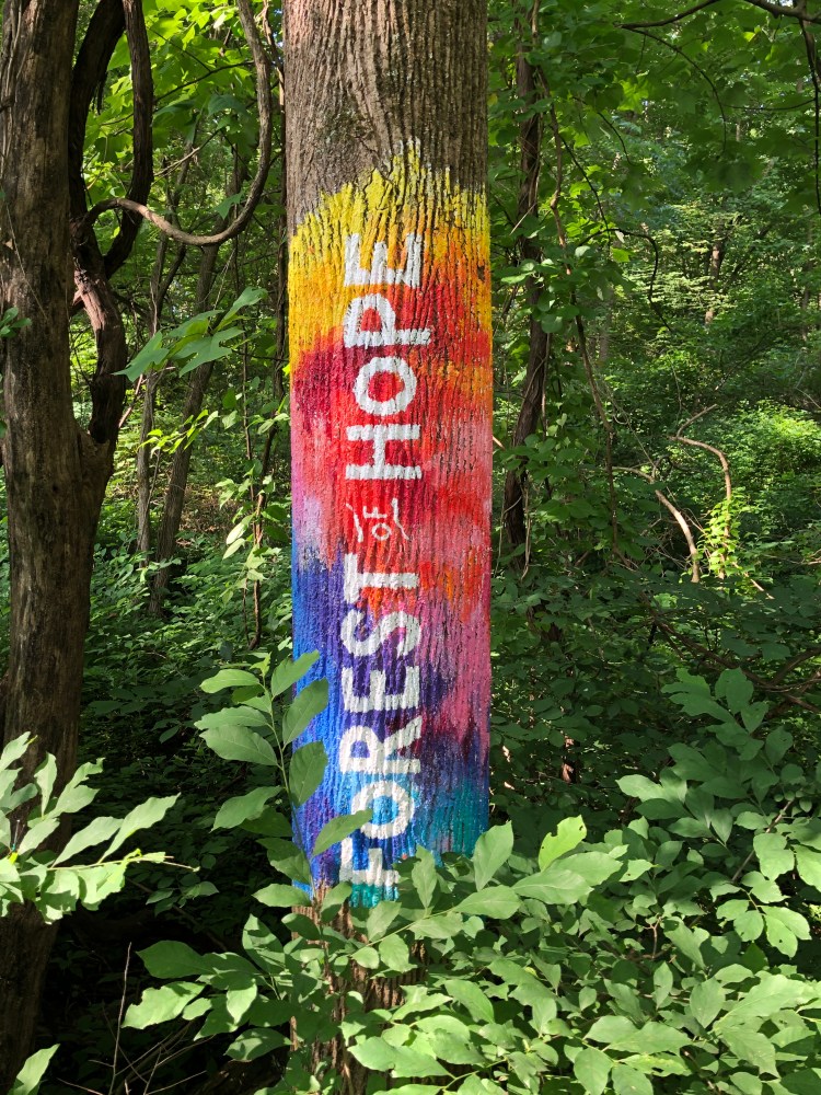 When the path splits after the artwork tress on the top of the hill, we are heading right.
