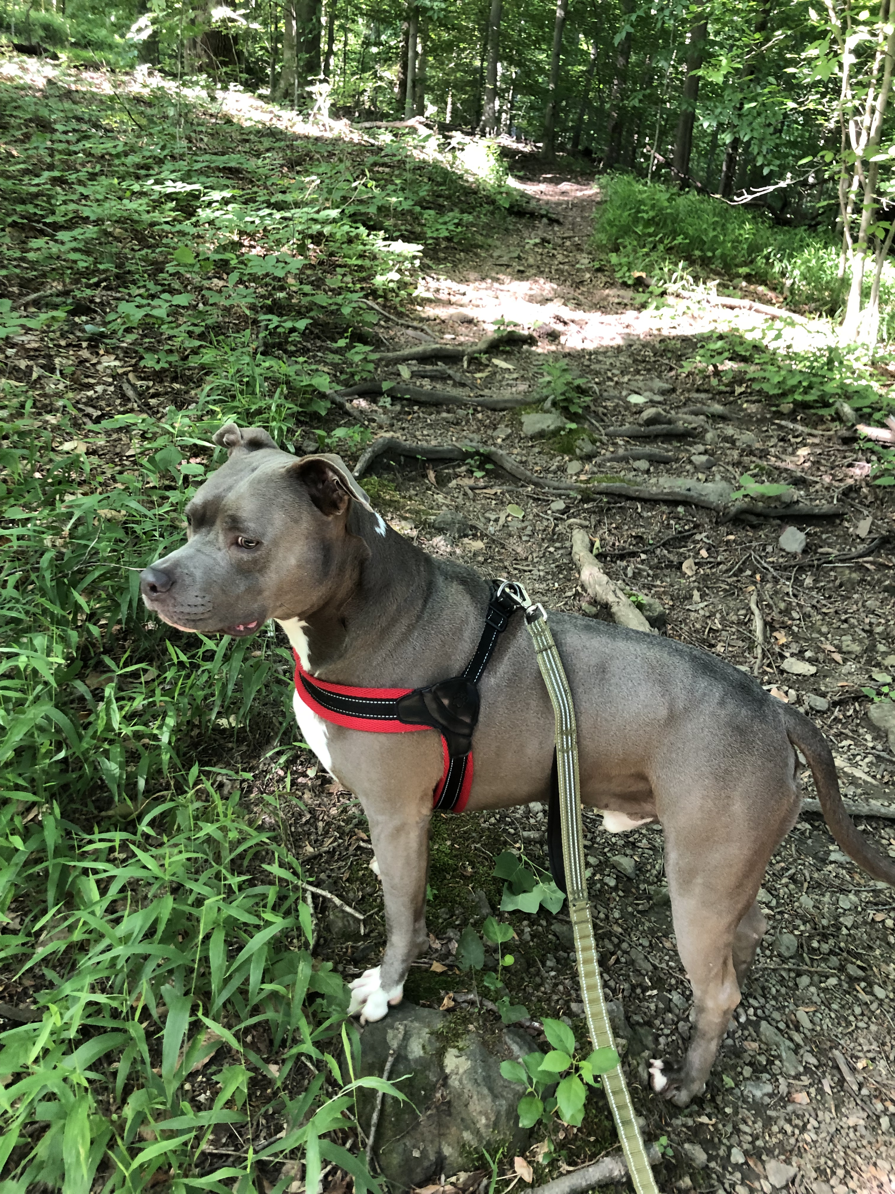 Continuing on the steep red trail we must pay attention to where we step. There are man made steps periodically but still have to be careful.