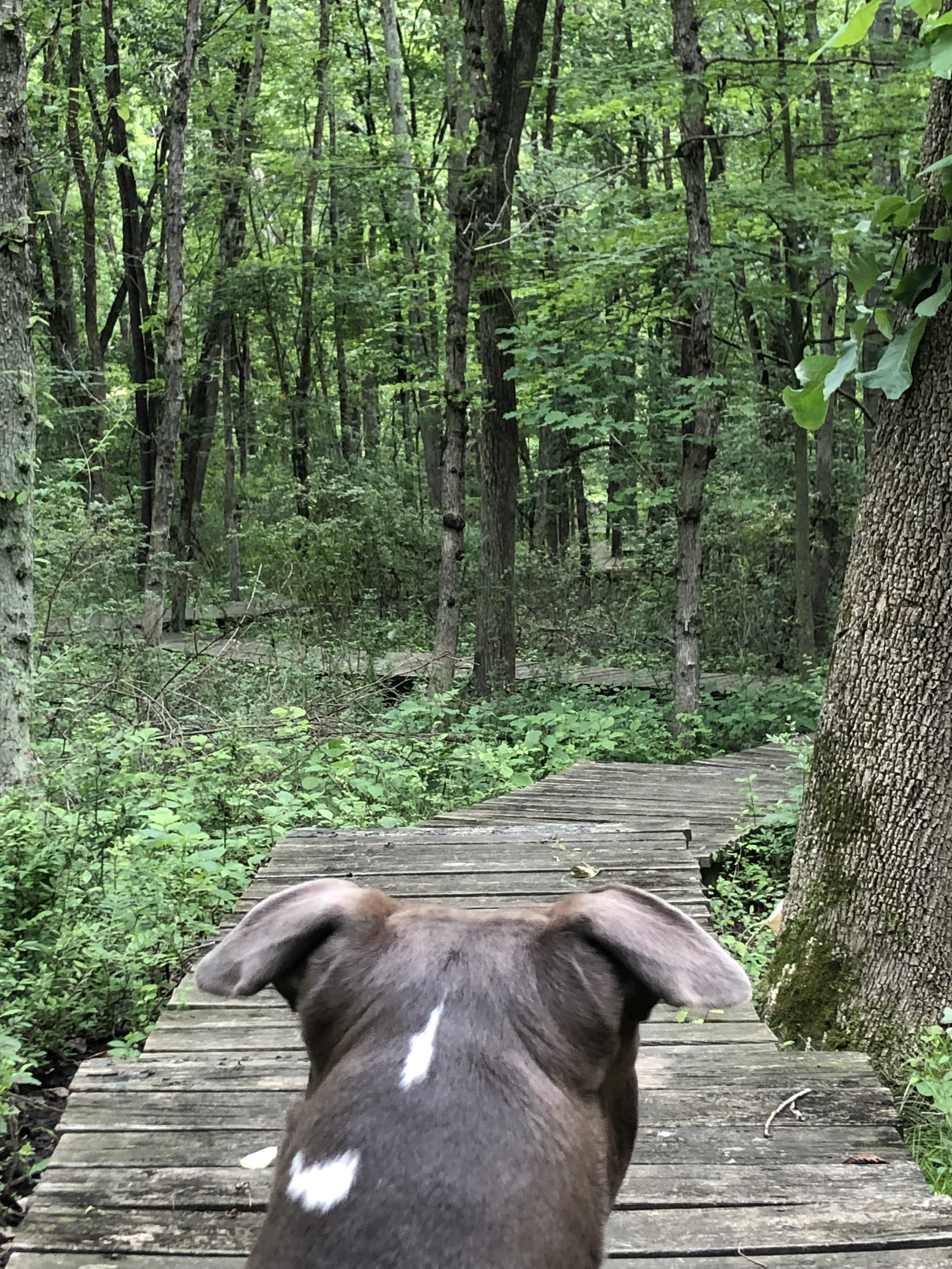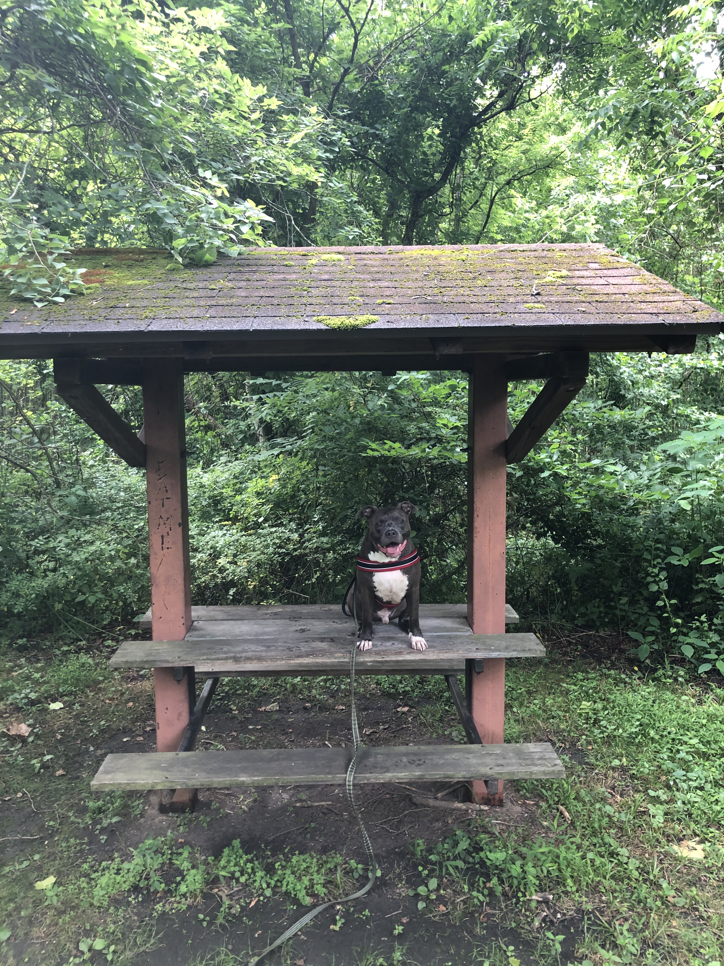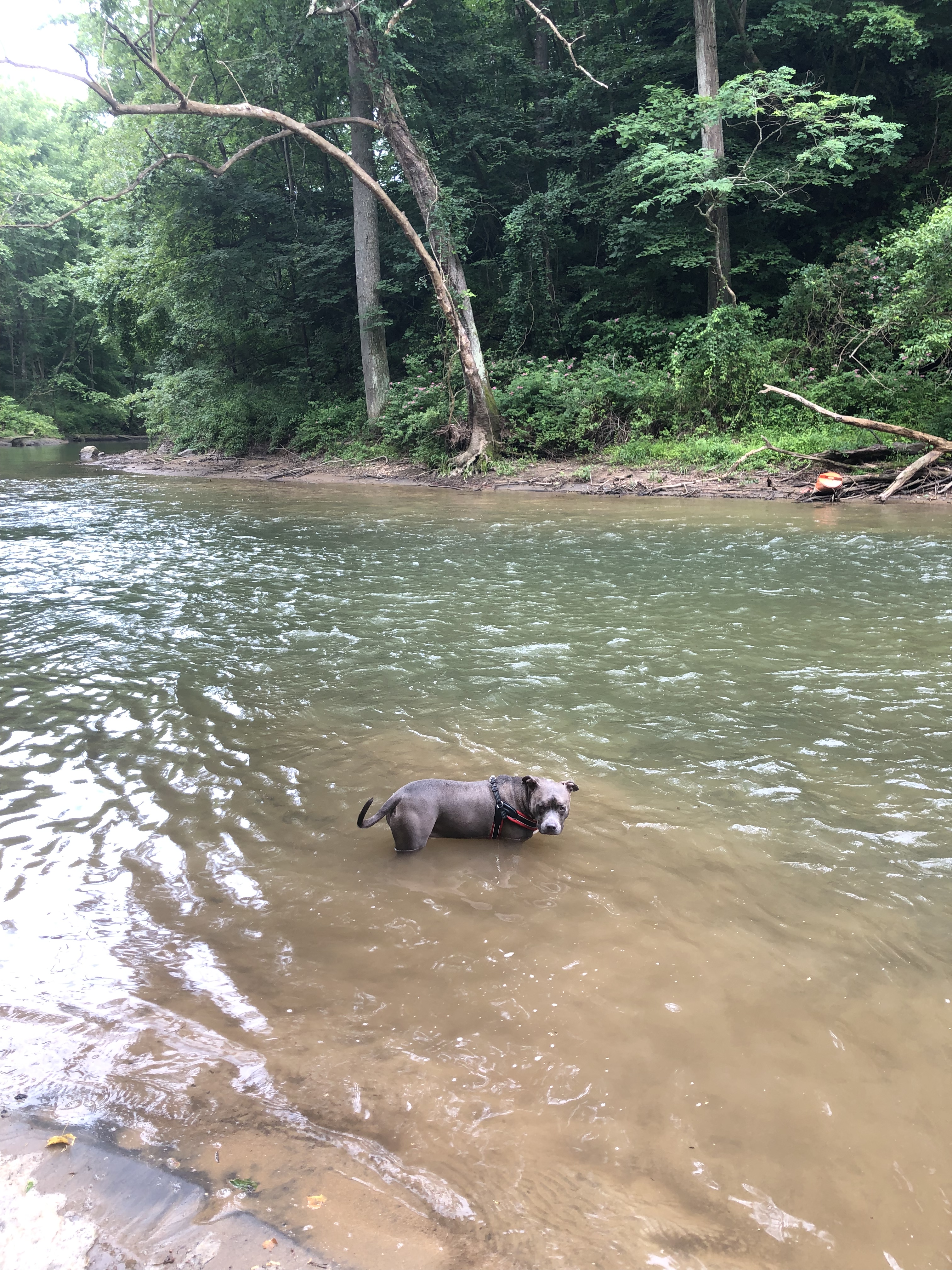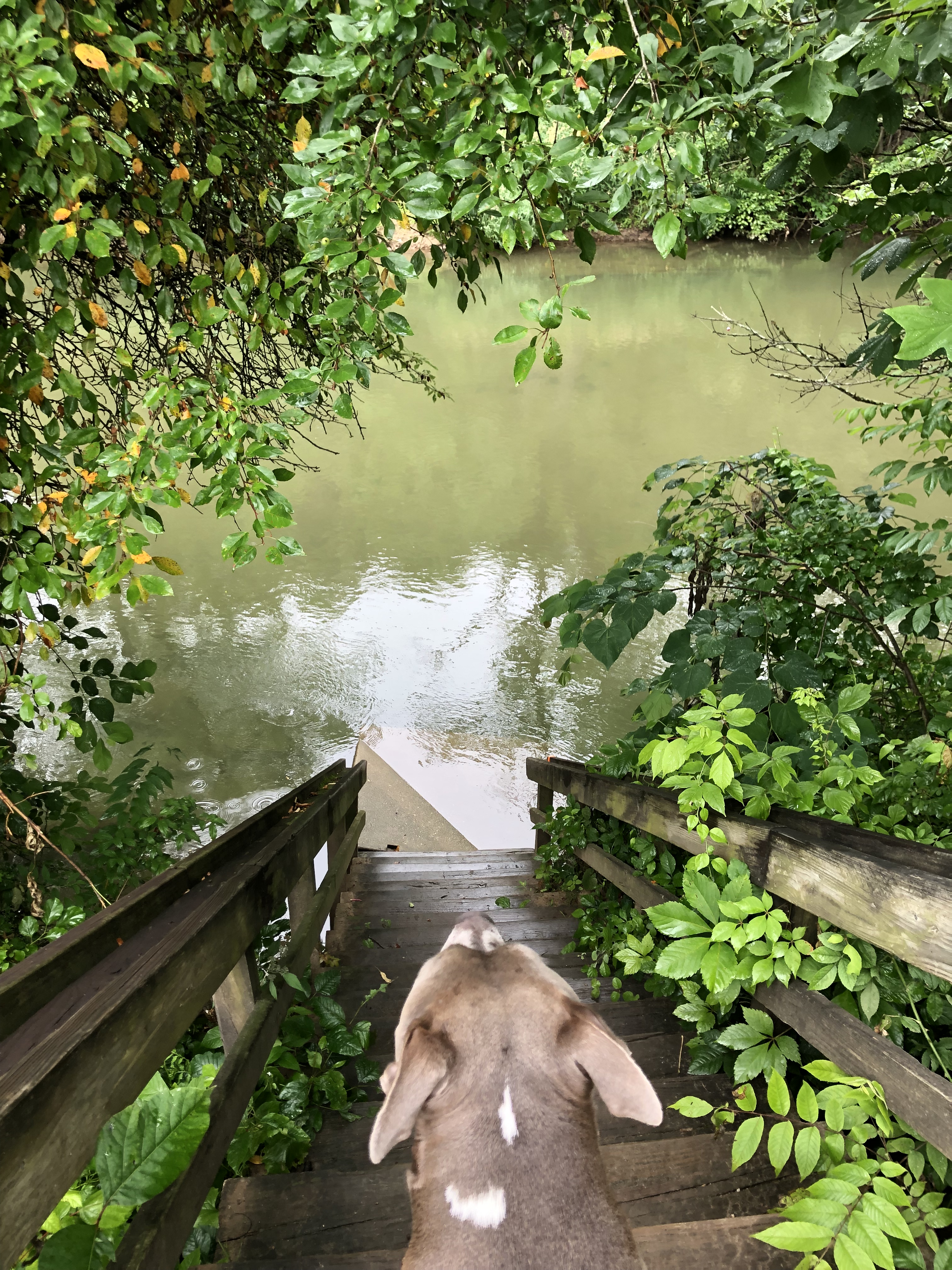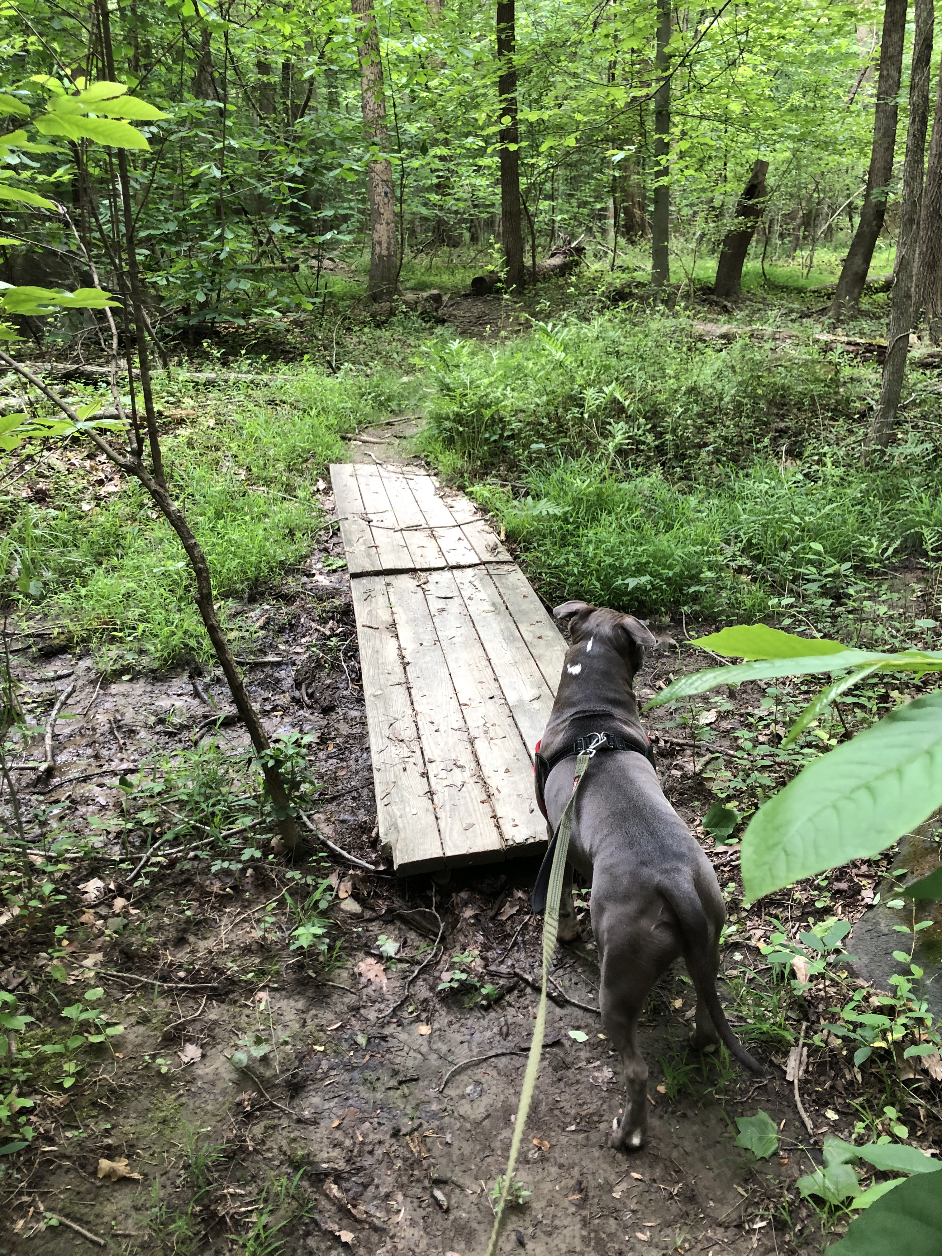 The crossing is a bit adventures for people but easy for dogs. Happy pup.