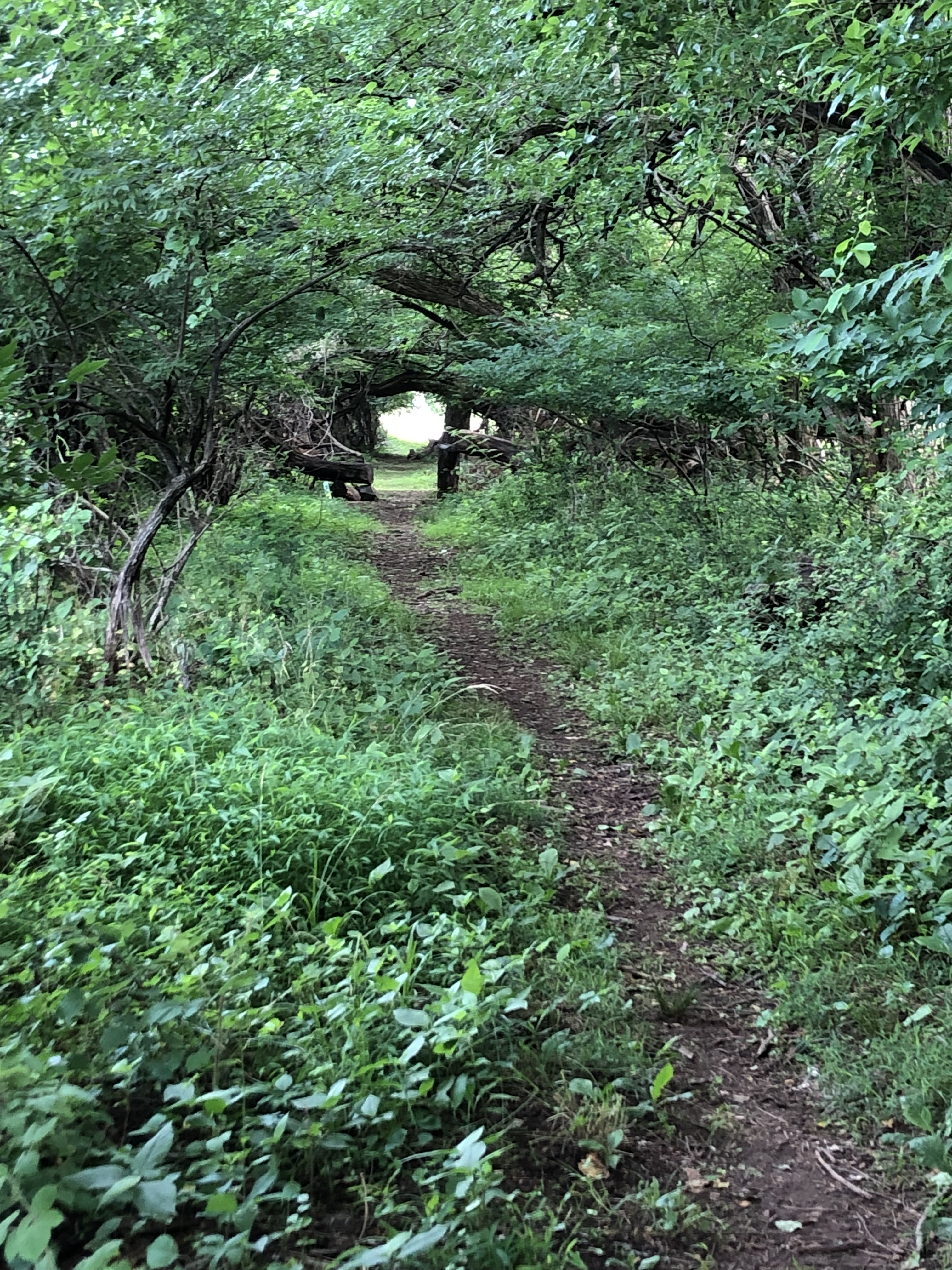 At the clearing we keep straight/left until seeing the steps through the overgrown vegetation. This will lead us to the playground.