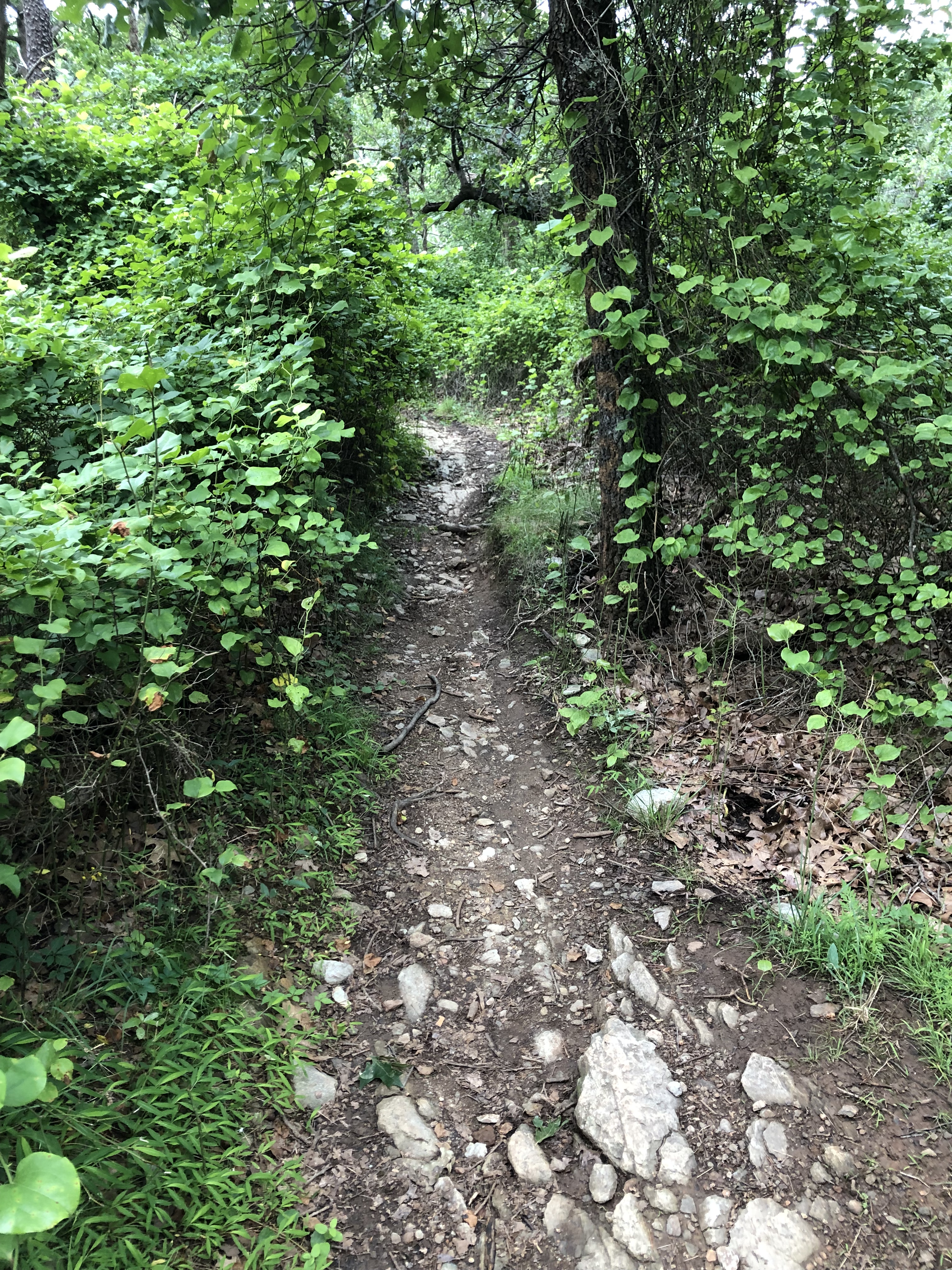 Back to reality. The trail awaits. Uphill for a while.