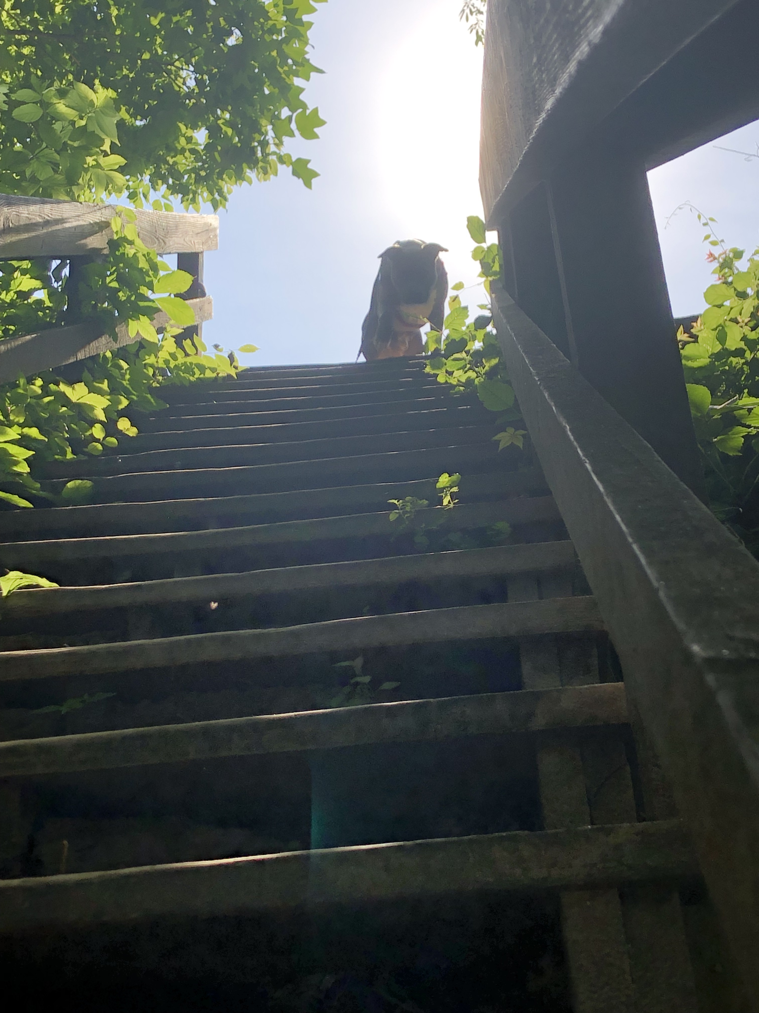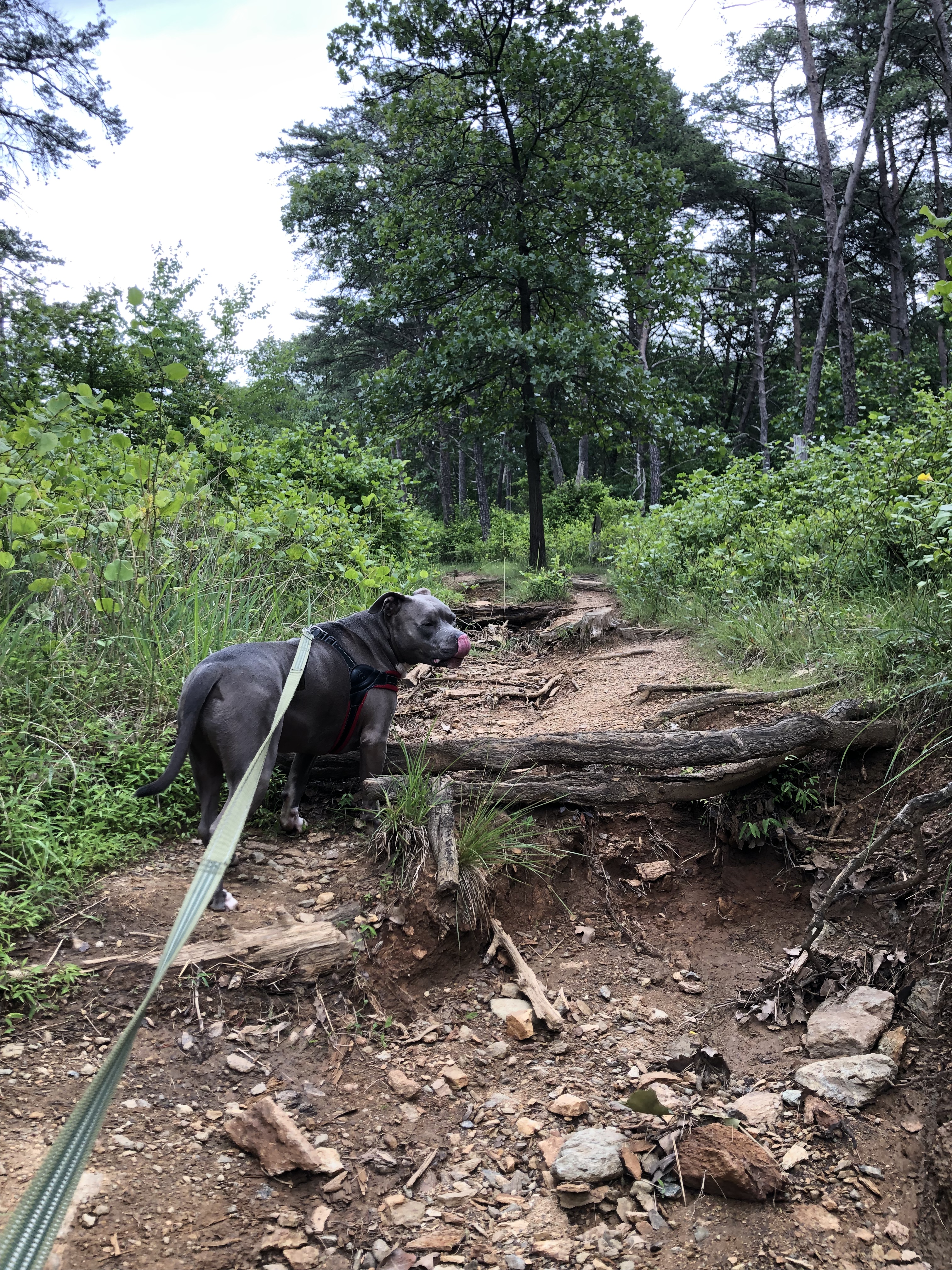 In the middle of the struggle, we meet a guy (3rd person today) with a beautiful German Shepard. It’s not enough to huff and puff going up, now I have to drag an 80 lb dog with me as well who doesn’t wanna not great another pup. Great.